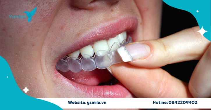 • Bước 3: Đeo máng tẩy trắng và lau sạch phần thuốc thừa xung quanh để tránh kích ứng nướu.