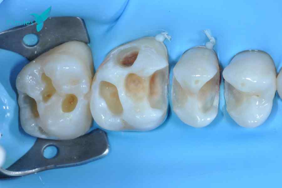 Đối với những bệnh nhân có tình trạng sâu răng nghiêm trọng, bác sĩ có thể tiến hành gây tê trước khi trám răng phục hồi để giảm cảm giác đau đớn, giúp việc thực hiện trở nên thuận lợi hơn. Sau đó, bác sĩ sẽ sử dụng thiết bị chuyên dụng để làm sạch tủy, ngà răng bị sâu, loại bỏ vụn thức ăn và mảng bám, đồng thời dùng mũi khoan để tạo hình xoang trám phù hợp với từng loại vật liệu trám khác nhau.